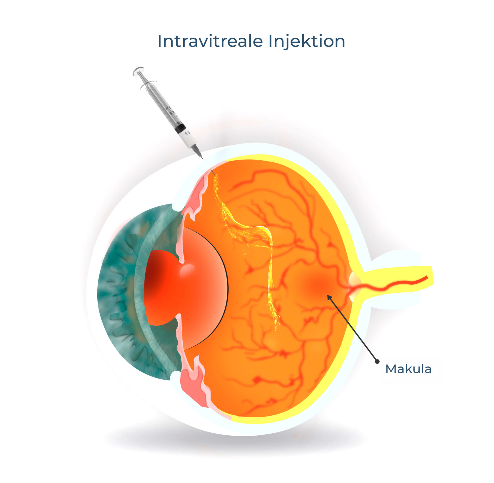 Bei der IVOM wird das Medikament mit einer feinen Kanüle direkt in den Glaskörperraum des Auges injiziert. Die Injektion dauert wenige Sekunden, ist schmerzfrei und erfolgt in lokaler Betäubung.